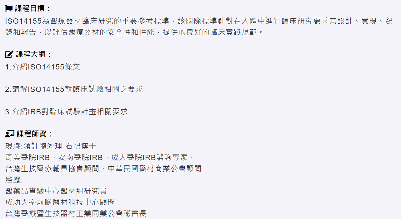 課程分享!! ISO 14155醫材臨床試驗基準課程