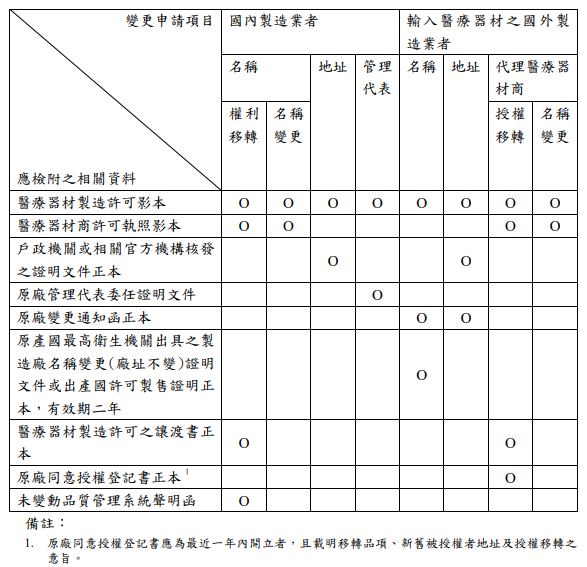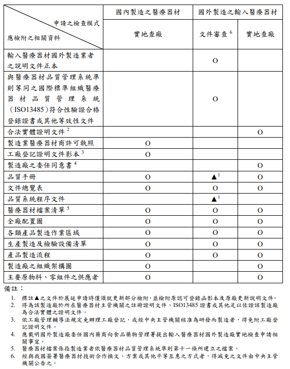 1.依據醫療器材品質管理系統檢查及製造許可核發辦法(附表一)